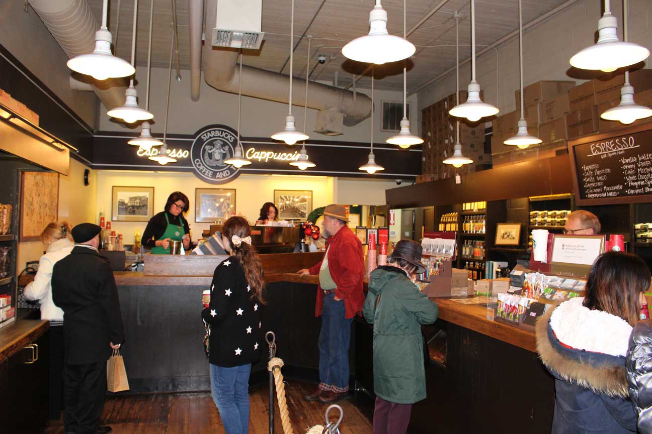 スタバ1号店はもはや観光地と化しており、多くの観光客でにぎわっている。