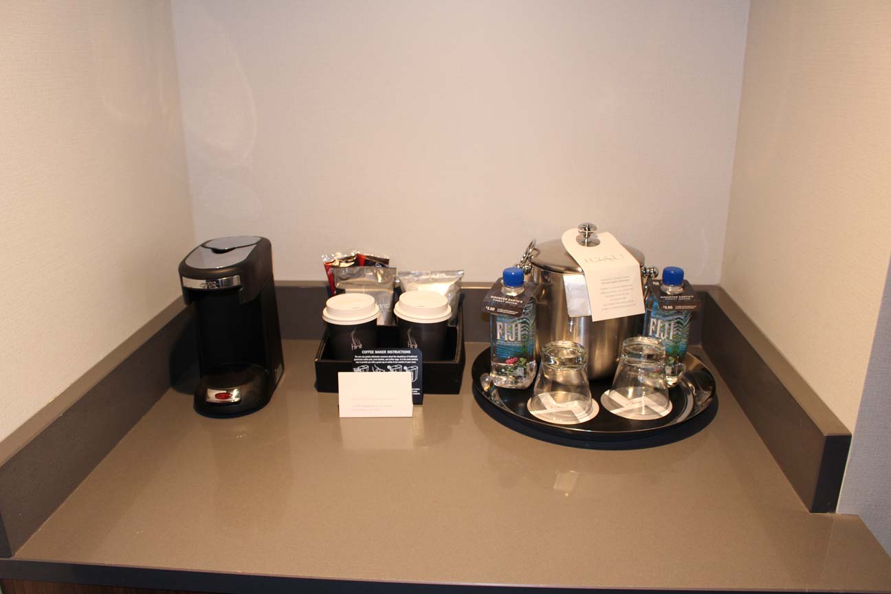 ミニバーにはペットボトルのお水と湯沸かしポット、コーヒーや紅茶がそろっている。