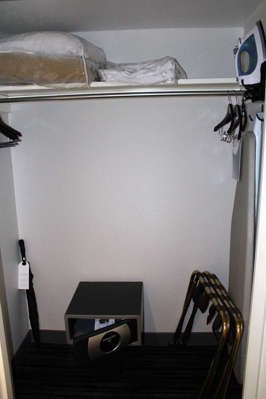 クローゼットには、金庫やアイロンもそろっており、傘も置いてあった。
