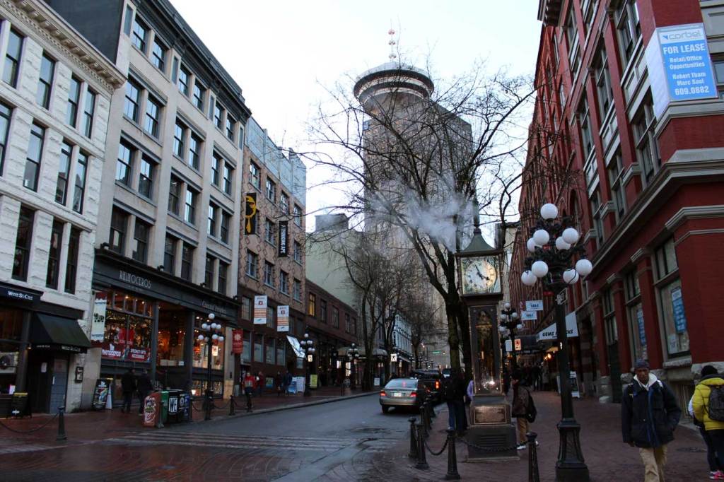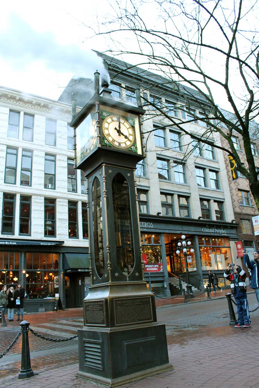 The Steam Clock(蒸気時計)は15分ごとに蒸気を噴出し、笛を鳴らすユニークな時計で、ガスタウンの有名なランドマークだ。
