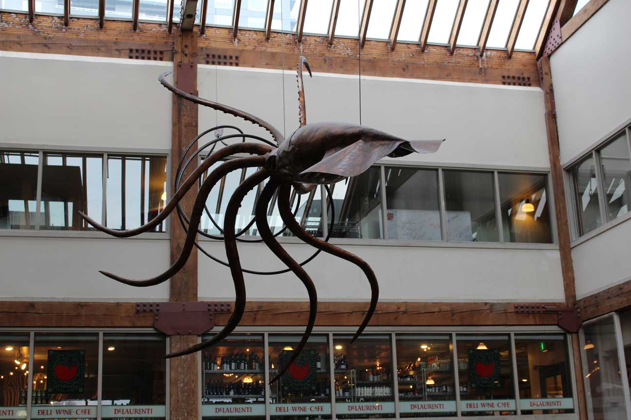 パイク・プレイス・マーケットからすぐ目の前に見えている海に向かって降りていく。