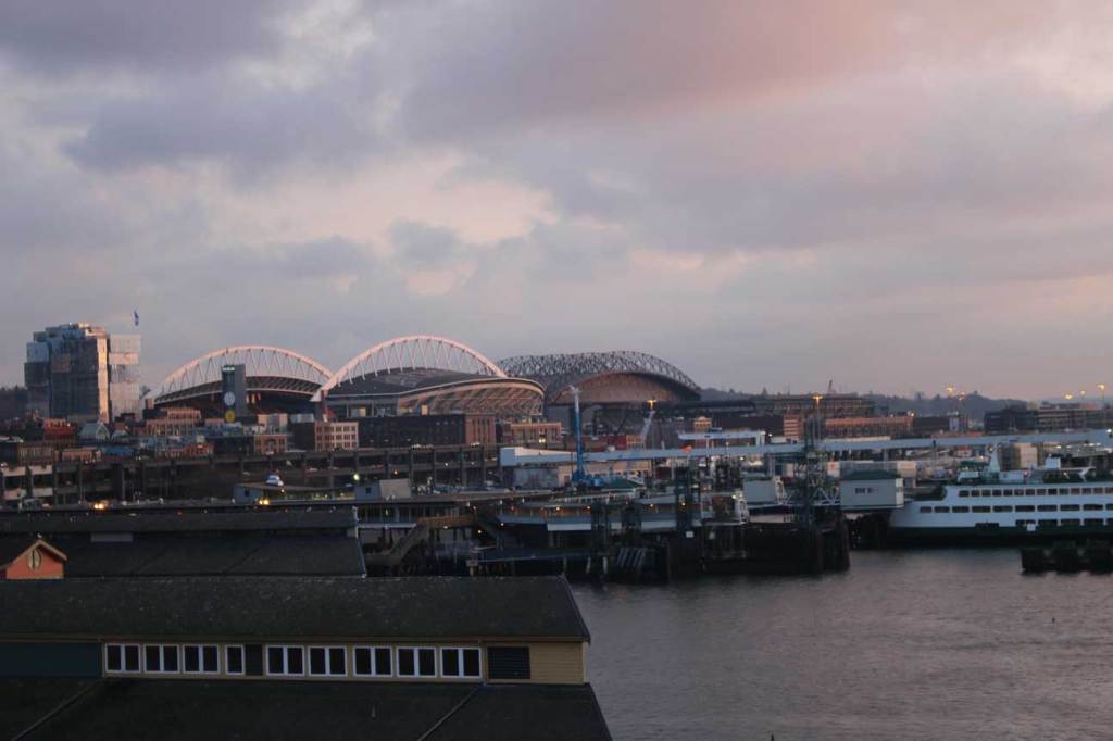 ゆっくりとてっぺんを目指して回転していくと、海に沈む夕日とシアトルの街が大パノラマで広がった。