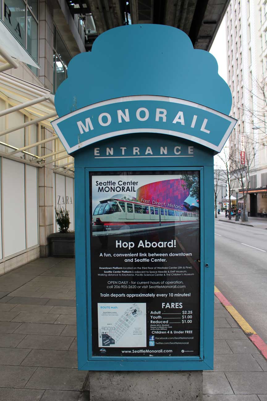 乗り場まで少し離れていたが、せっかくなのでスペースニードルのあるシアトルセンターまでモノレールに乗って行くことにした。