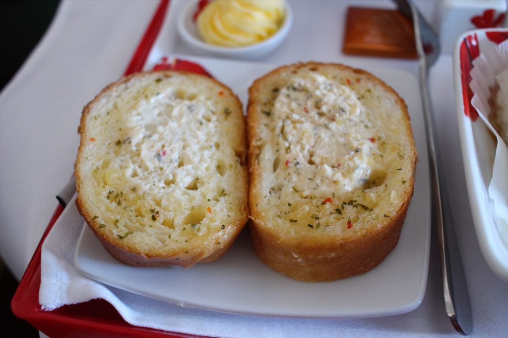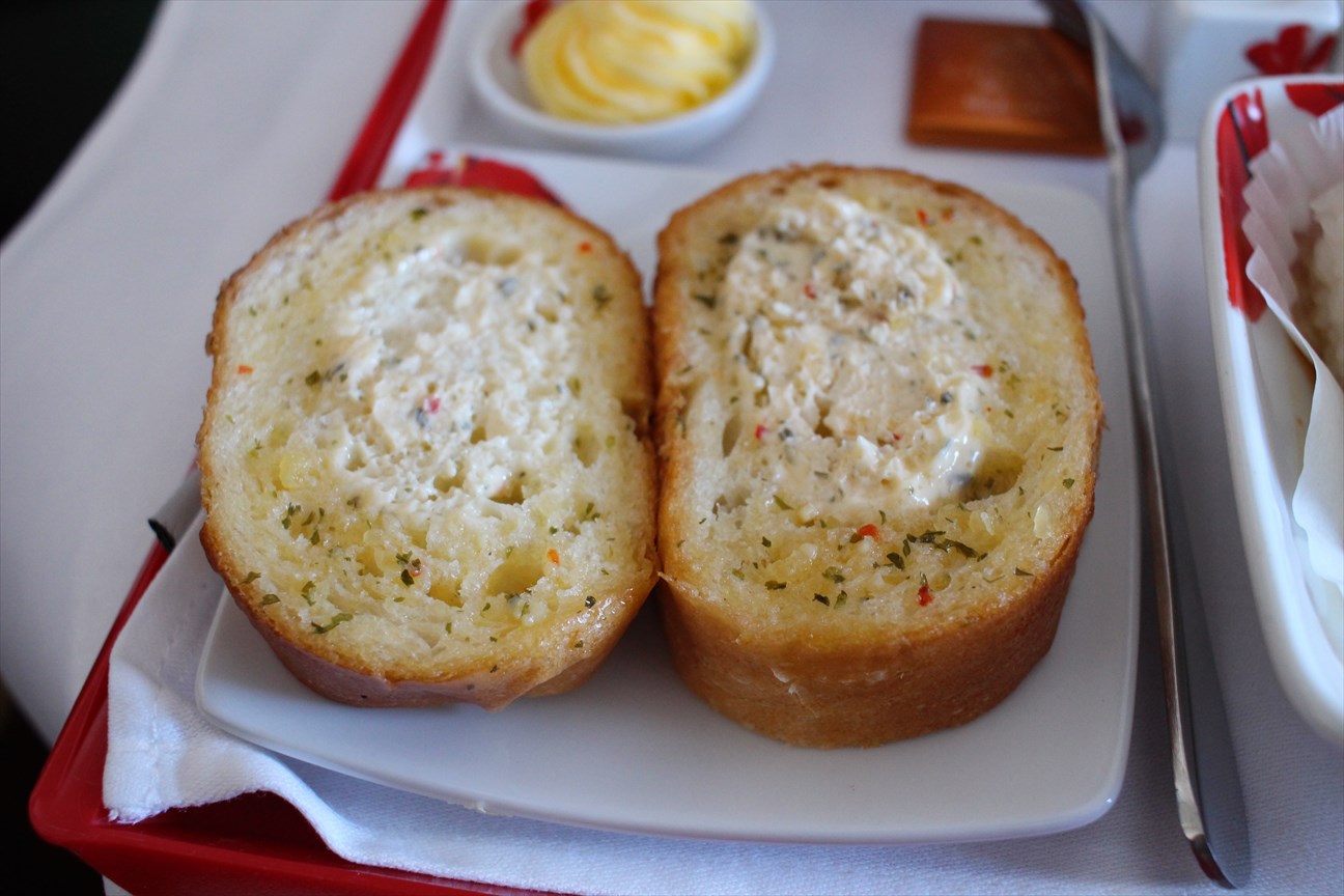 短距離路線ということもあり量は少なめだが角煮トガーリックトーストが美味しかった。