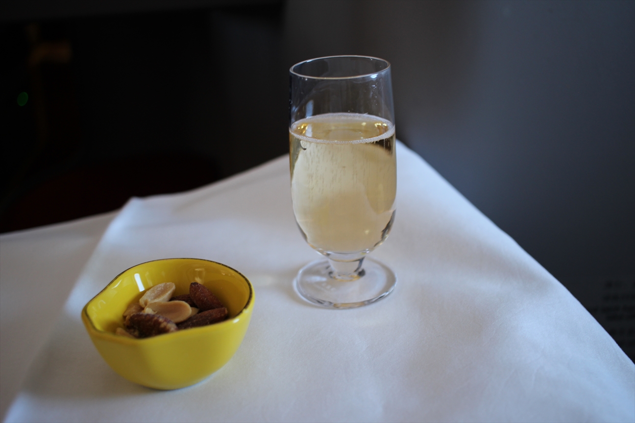 ビジネスクラスということでまずはシャンパンで乾杯!