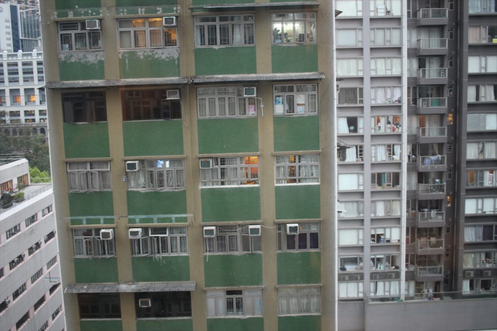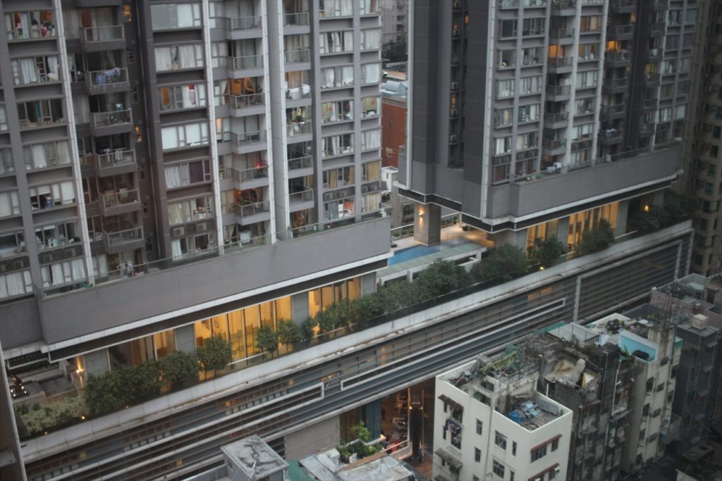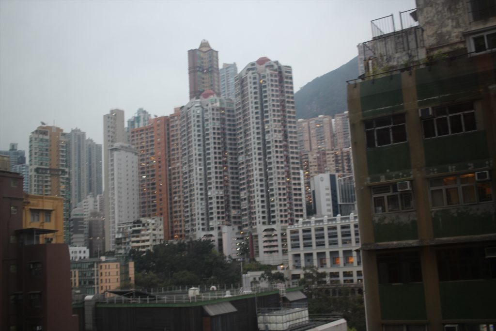 香港なので窓の外も高層ビルだ。