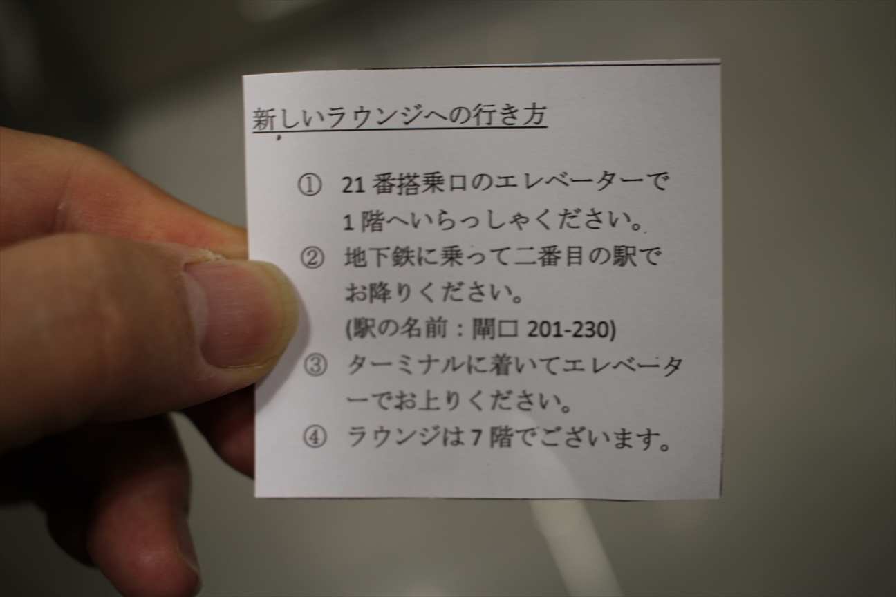 新しいラウンジのほうへどうぞとのことで行き方が書いてある。