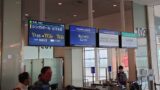 空港では、フライトを確認し、すぐにチェックインシテ荷物を預けて身軽になる。