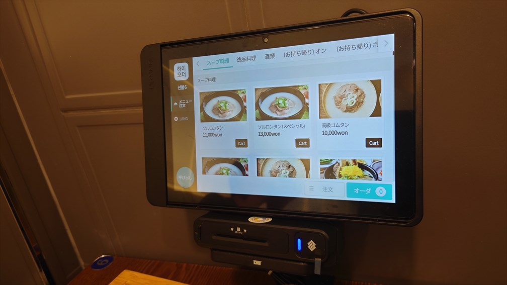 ハ・ヨンホ新村ソルロンタン ソウルスクエア店に入るとメニューはタブレットで日本語表記にもなる。