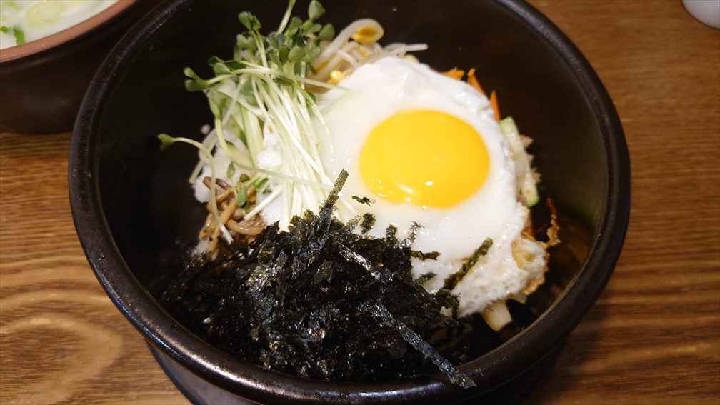 付け合わせのキムチを食べていると、ビビンバとソルロンタンが運ばれてきた。
