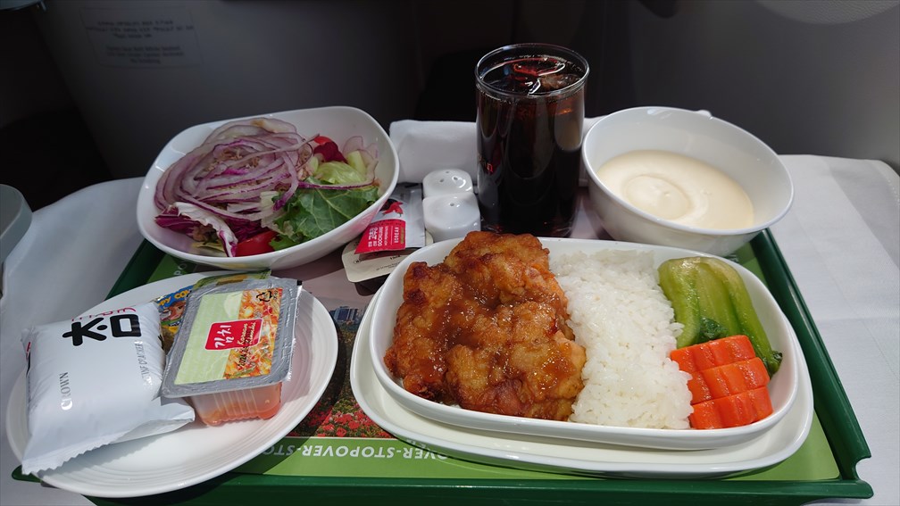 機内食はソウル路線らしくヤンニョムチキンで美味しかった。