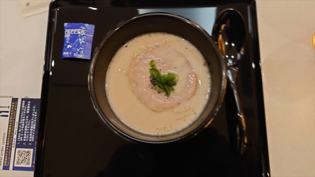 お腹が空いていたので、まずはヌードルバーで豚骨ラーメンを注文。