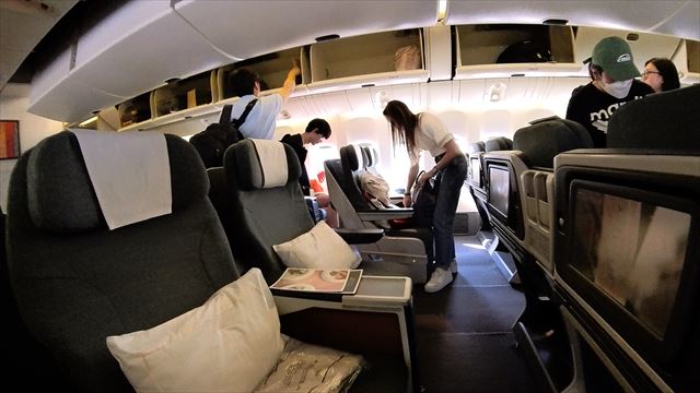 2-3-2でフルフラットにならないシートなのは予約の段階で分かっていたが、今回は限られた条件の中でも機材の乗り比べと思いチョイスした。