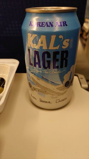 ビールを頼むと銘柄を聞かれ、何があるかと尋ねるとKOREAN AIRのビールがあるという。