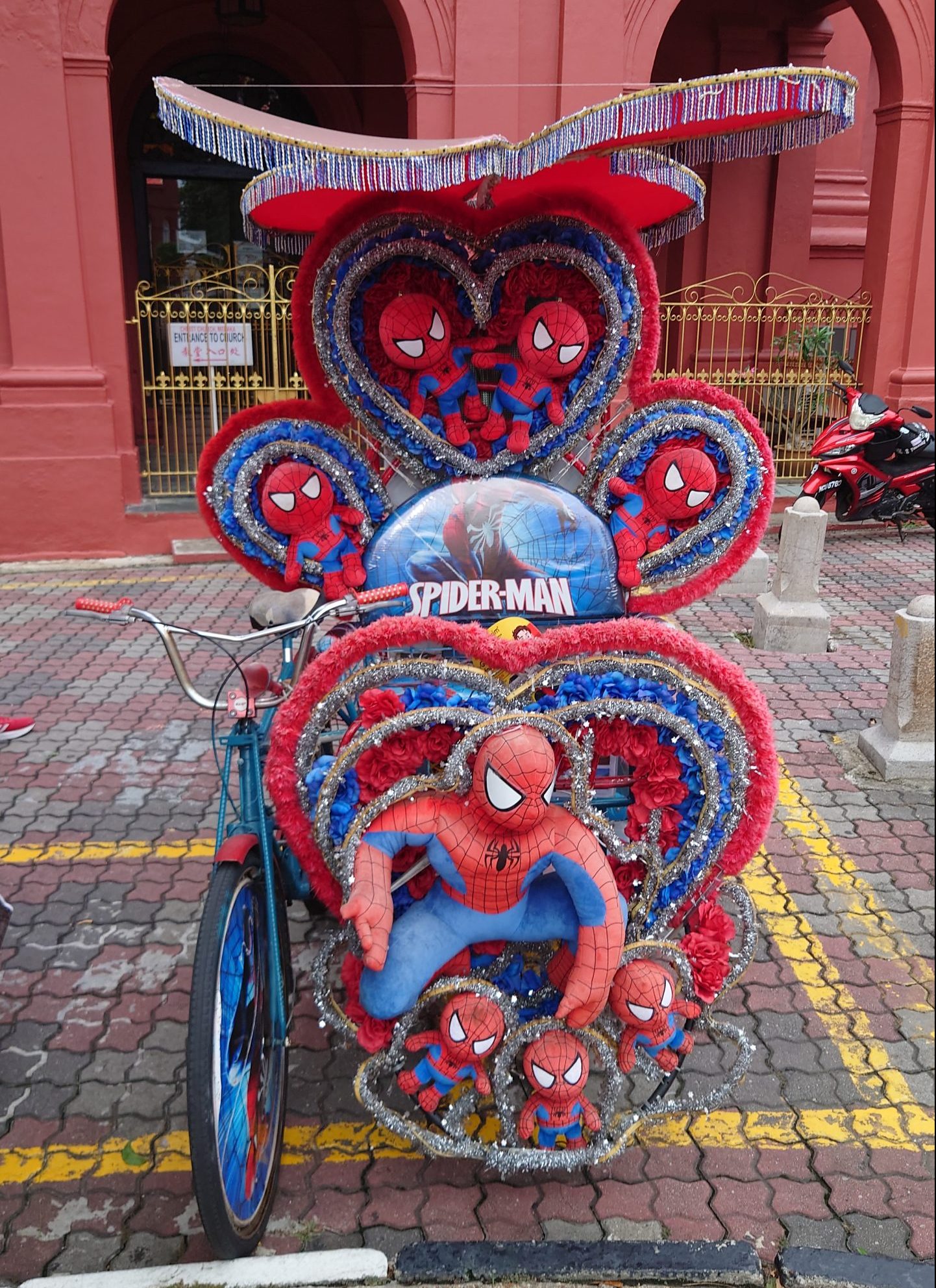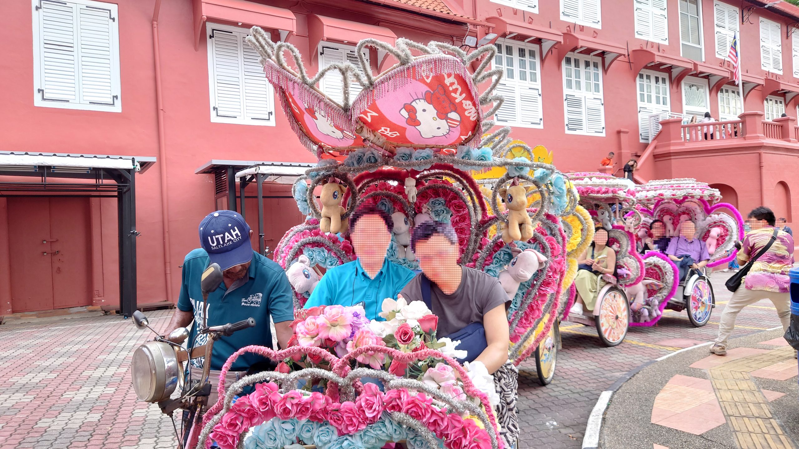 オランダ広場では鮮やかな色と派手な装飾が施されている観光リキシャが目につく。