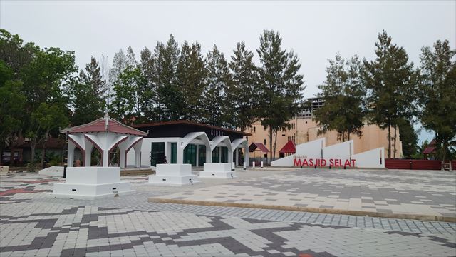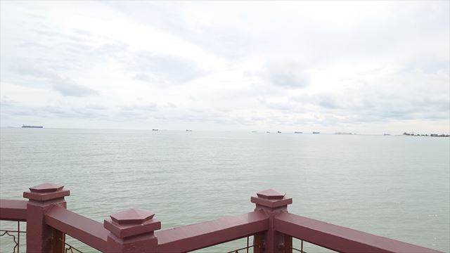 モスクの奥に進むとマラッカ海峡を望める。