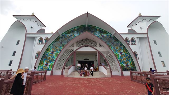 モダンなイスラム建築様式を取り入れており、入口のステンドグラスも大変美しい。