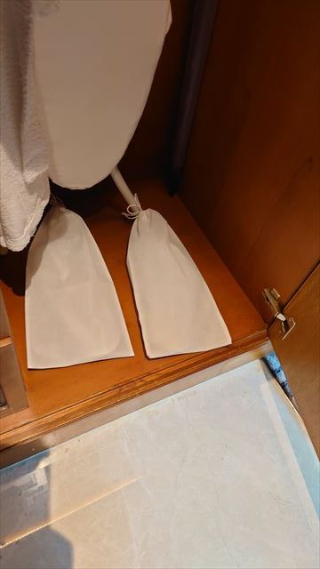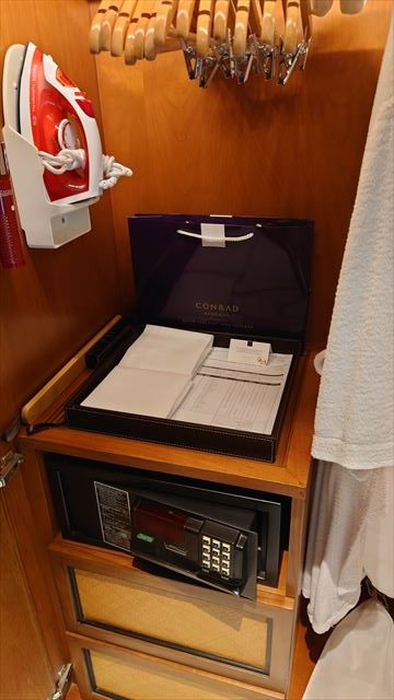 クローゼットにはセキュリティボックス、バスローブやアイロン、ふかふかのスリッパも。