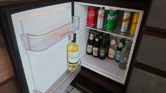冷蔵庫の中はミニバーのドリンク類でいっぱいだ。