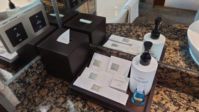 シャワールームではピンクのゾウと並びコンラッドバンコク名物の花柄のゾウがお出迎え。
