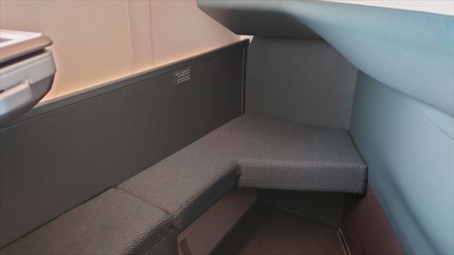 ビジネスクラスのシートは1-2-1のヘリンボーンでフルフラットになる。