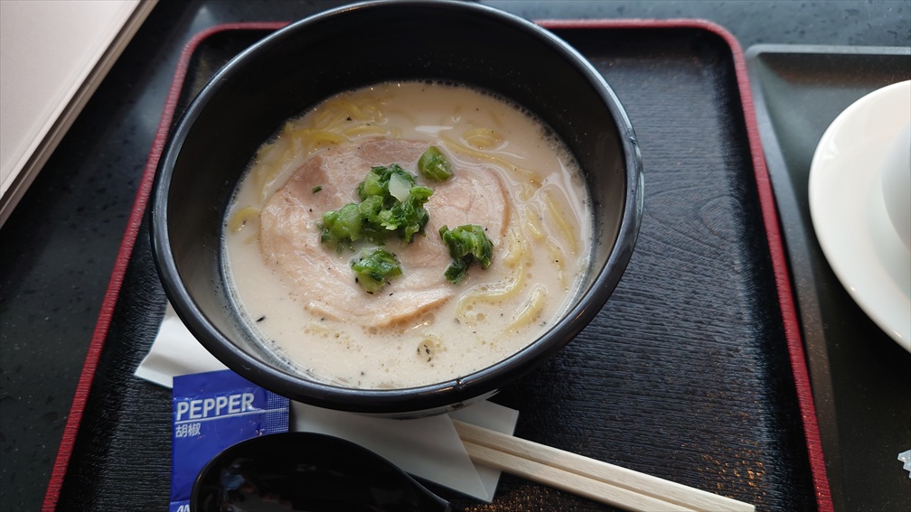 〆はやはりANAラウンジ名物のヌードルバーで豚骨ラーメン。