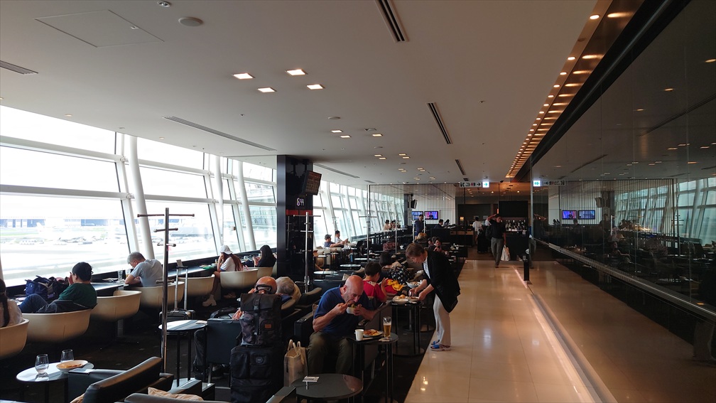 ラウンジでのビールは旅行気分が盛り上がる最高の時間だ!!