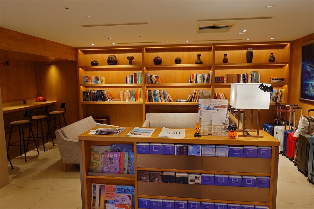 また、奥にはソファと本棚があり、ガイドブックも置いてあった。