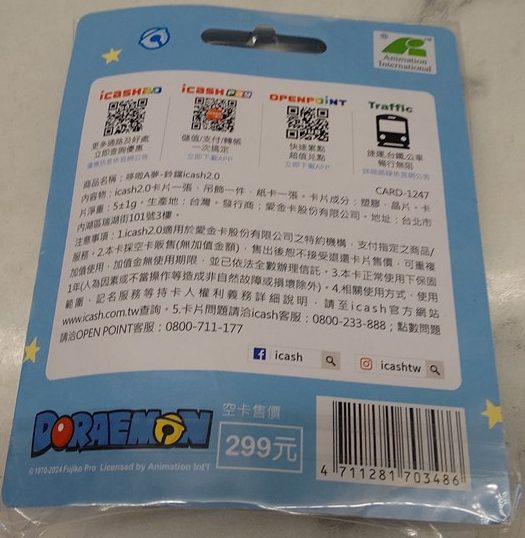 この時点ではちゃんと認識していなかったのだが、台北捷運公司(MRT運営会社)発行の悠遊卡(EasyCard)ではなく台湾でセブンイレブンを運営している「統一企業(Uni-President Enterprises)」が発行している「iCash」だった。