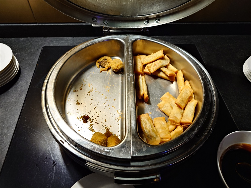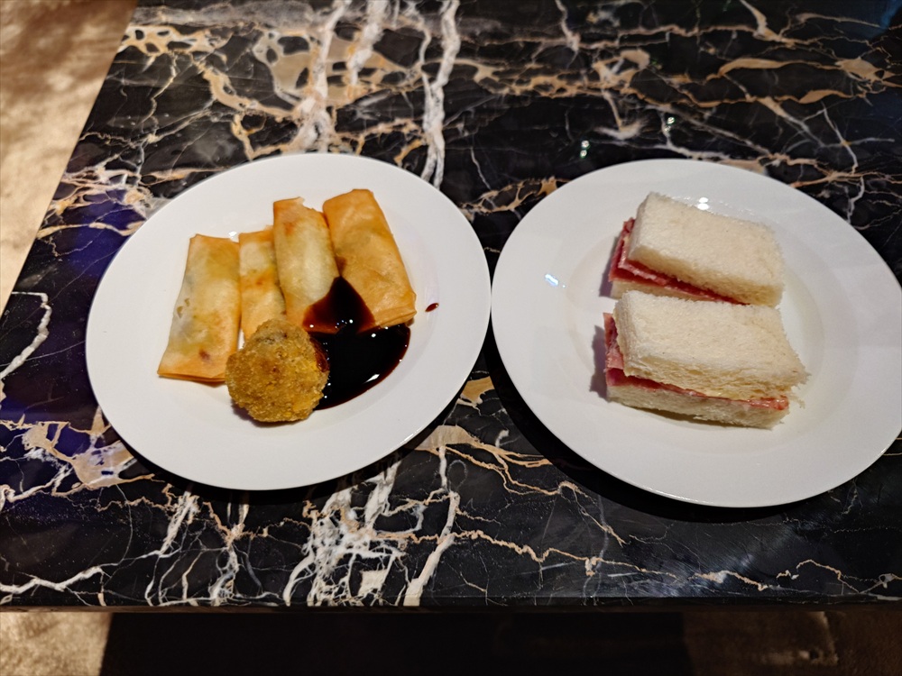 翌日のカクテルタイムはなぜか春巻きとミニ肉団子揚げ。