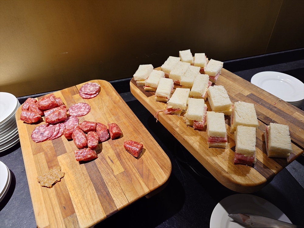 そしてサラミとミニサンドウィッチ、鶏のささみとパプリカの炒め物。