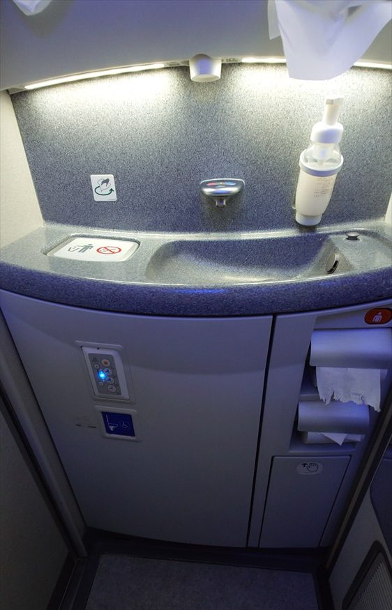 日本のキャリアはCAさんが頻繁にトイレ清掃をしてくれて、いつもきれいに使えるので安心感がある。