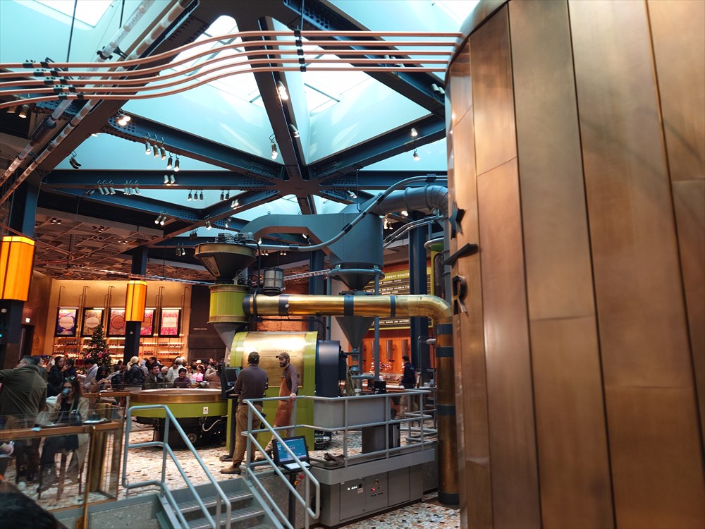 コーヒー豆が焙煎される様子を間近で見ることができ、まるでコーヒーのテーマパークのようだ。