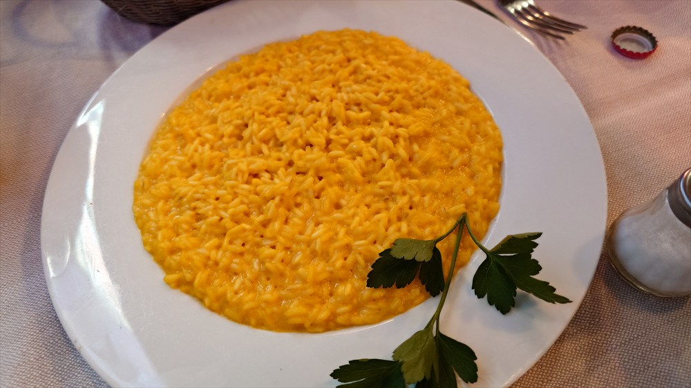 さらにミラノ風リゾット(15€)はサフランの黄色が目に鮮やかだ。