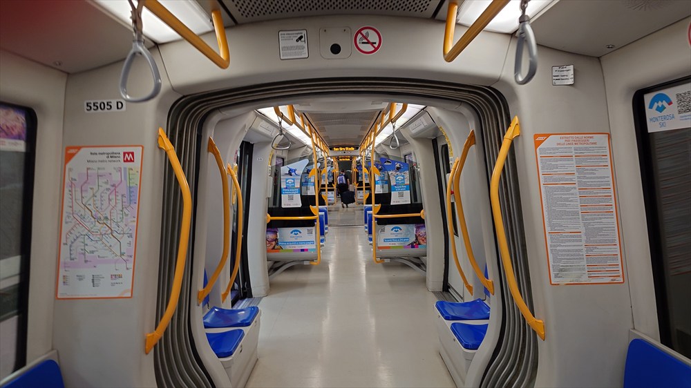 M5線 (紫線)は新路線なのか駅も車両も新しく、乗客は少ない。