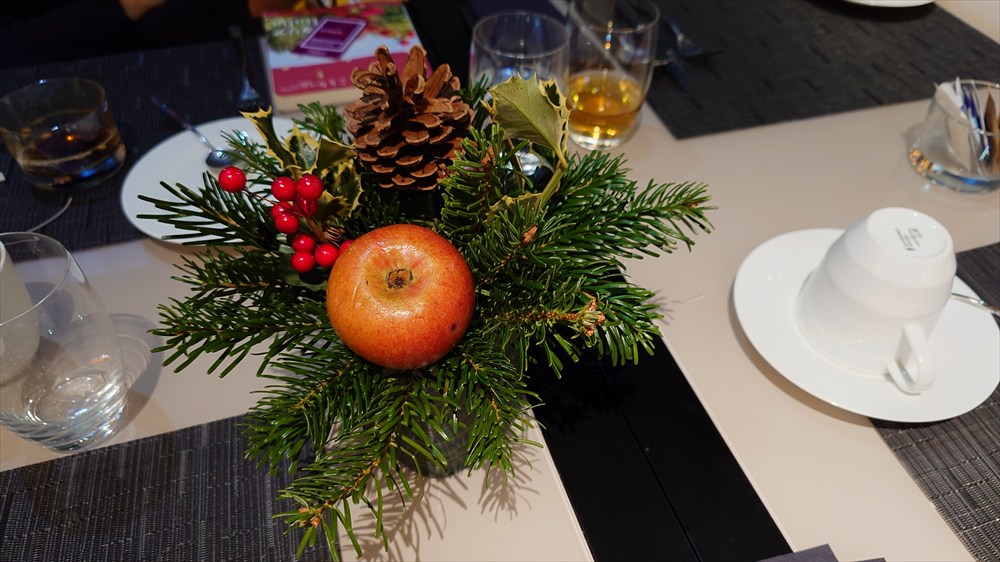 テーブルにもポインセチアやクリスマス飾りで雰囲気を盛り上げる。