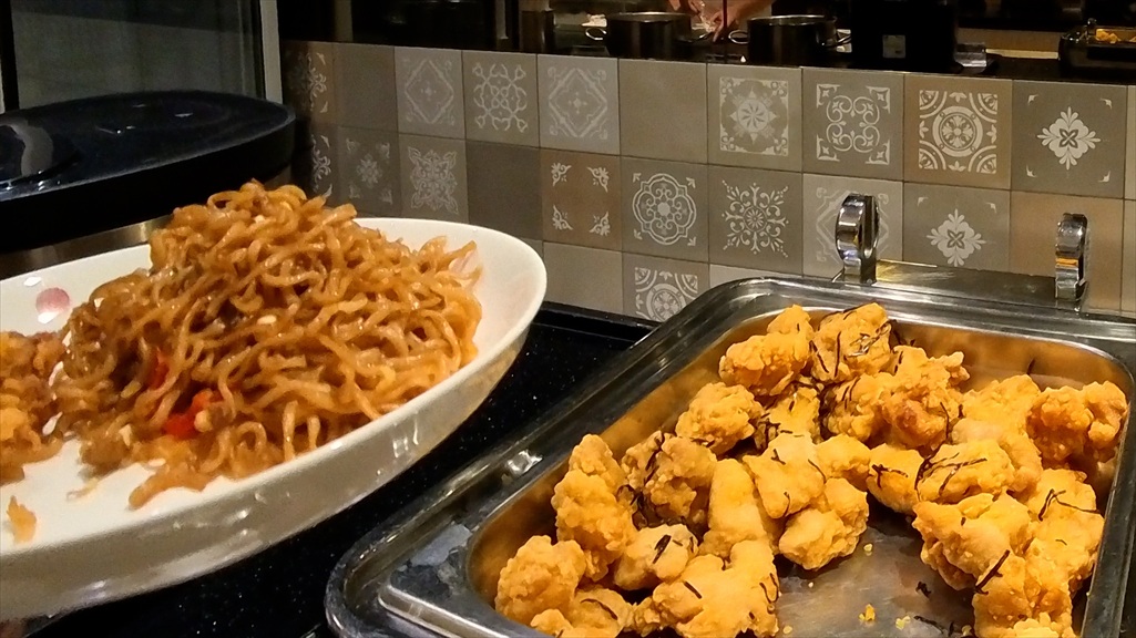 LCCで機内食が無かったため、まずは焼きそばとから揚げで腹ごしらえ。