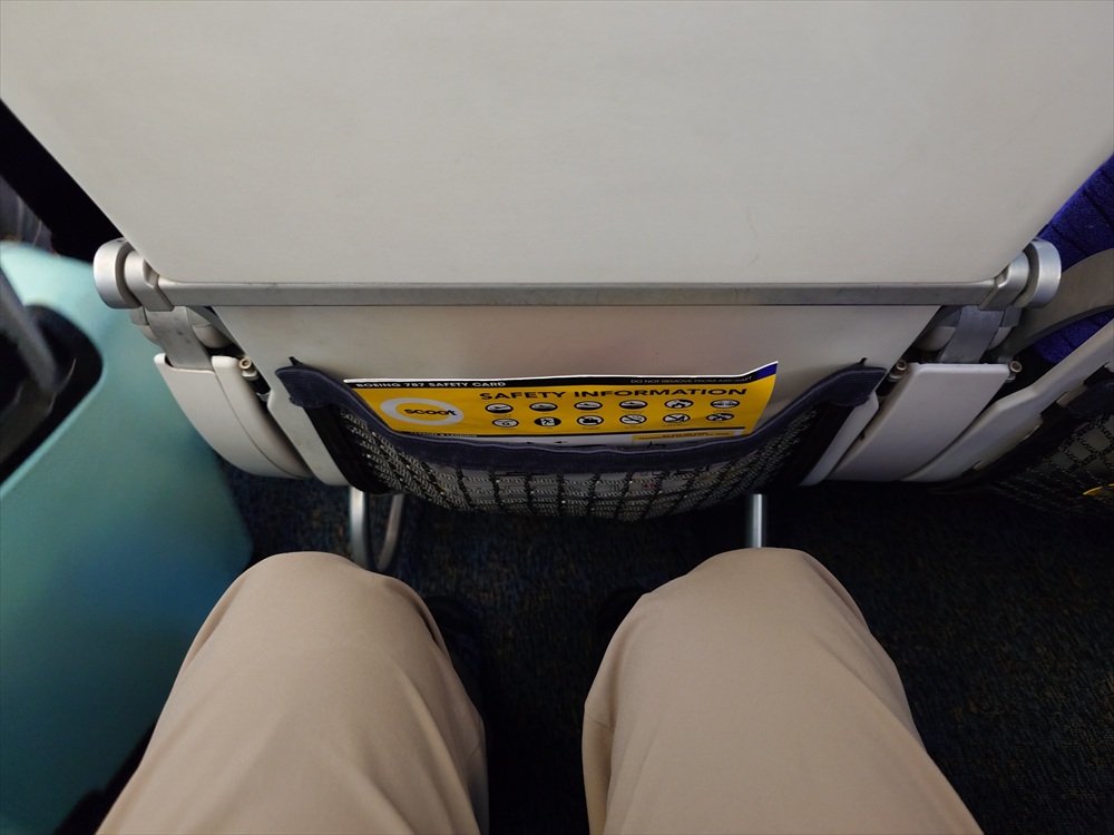 スクートのHPによれば「787ドリームライナーのエコノミーシートは、シート幅18インチ(45.72cm)、シートピッチ31インチ(78.74cm)です。」